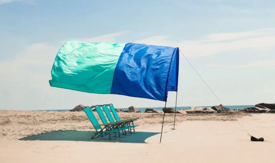 It’s compact and stylish. Also, it’s quite large. I think this is great if it works. That said, it looks like it needs wind to stay up? I wonder how that works.
